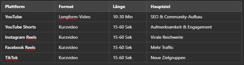 Die Kombination aus Longform-Videos und Kurzvideos ist eine der effektivsten Strategien zur Traffic-Generierung. Während lange Videos für tiefergehenden Content und SEO-Vorteile sorgen, bringen Shorts, Reels und TikToks schnelle Aufmerksamkeit und virale Effekte.