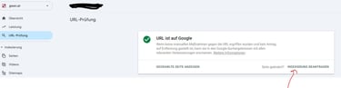Gehen nun auf den Reiter "URL-Prüfung" und klicke rechts auf Indexierung beantragen.